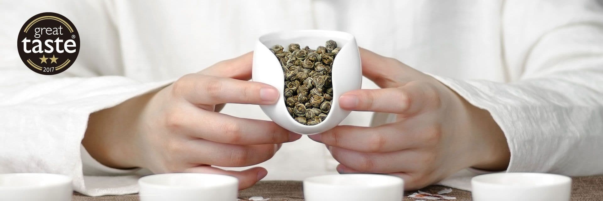 Base material from Fuding City, Fujian Province, scented with fresh jasmine blossoms using traditional layering methods. Multiple scenting rounds create the strong floral profile. Suits drinkers who enjoy pronounced jasmine character over more balanced jasmine greens.